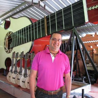 El también músico, de 40 años, dijo que creó este monumental instrumento años después de tener un sueño en el que caminaba dentro de un cuatro.