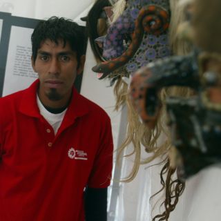 Juan Contreras tiene una novia “que ella está ahorita trabajando con los indígenas… le gusta la poesía y ella fue la que me hizo esto”, dice mientras cuelga en su puesto una pieza que invita, en un boceto de mercadotecnia, a la reflexión: “Hay gran variedad de máscaras horribles en estos tiempos/ como las máscaras de guerra y las injusticias/ que son más horribles que el gusano y la verruga/ que pudiera encontrarse en la máscara del tastuan/ las máscaras de hipocresía y robo”.