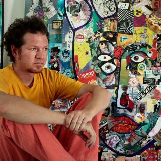 Comenta que a lo que sí está acostumbrado es a empezar a aplicar la pintura y a pegar imágenes en los collages, que son de sus favoritos por la explosión de sentidos e interpretaciones que pueden tener dos o tres imágenes juntas.