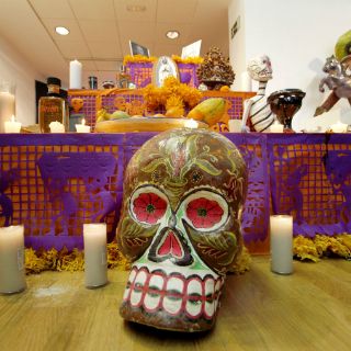 La ofrenda, con todo el colorido de la tradición mexicana, se montó en el recinto cultural Luis Cardoza y Aragón de la sede de la embajada de México en Guatemala, ubicado en la zona diez de la ciudad.