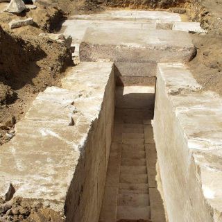 La zona excavada hasta ahora muestra una zona del interior del mausoleo que consiste en un corredor que desciende hasta el fondo de la pirámide.