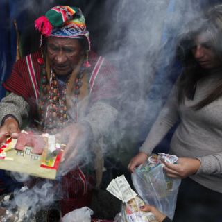 Los creyentes piden que les bendigan las miniaturas en iglesias católicas y después por chamanes, quienes las "challan" con humo de incienso y alcohol.
