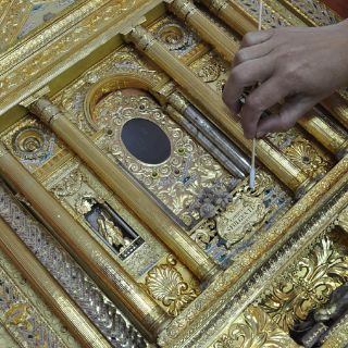 Los expertos del INAH realizaron la limpieza del relicario y de preservación de los huesos, lo mismo que del estuche donde se encuentran, labores que hoy registran un avance del 90 por ciento.
