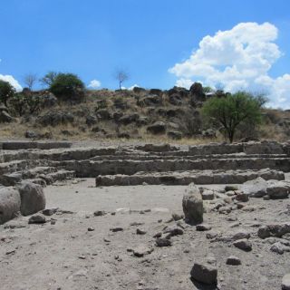 En este complejo se combinan elementos arquitectónicos que refieren a la vida ritual, debido a la construcción de la pirámides, cancha de juego de pelota, estructuras circulares y complejos de estructuras cuadriculares.
