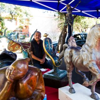 Al adentrarnos más en la experiencia que esta locación nos brindaba, nos encontramos con un vendedor de figuras de bronce. Don Enrique Solís, lleva más de doce años comercializando sus productos domingo a domingo. Nos platicó que es difícil encontrar verdaderos artículos de antaño y que por esa razón cambió un poco su oferta.