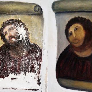 La pintura del eccehomo data de 1930 y estaba en muy mal estado de conservación, por lo que la anciana hizo un intento de restaurarlo pero dejó la obra irreconocible.