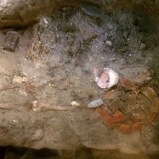 Debajo de "la adosada" fue que se hizo el "espectacular" descubrimiento de la tumba donde estaban los restos de la antigua reina maya, con elaboradas ofrendas que incluyen vasijas de cerámica fechadas entre finales del siglo siete e inicios del ocho, detalló.