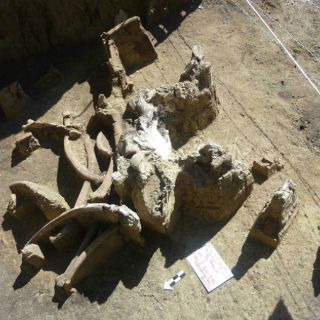 Las excavaciones arqueológicas se llevaron hasta ese punto, "ahí nos percatamos que el mamut no estaba completo, seguramente hubo corrientes de agua que lo fueron desmembrando". Del animal se encontraron costillas, vértebras, huesos largos de las extremidades, una parte del cráneo y el maxilar sin muelas, en tanto que las defensas se habían astillado y solo se pudo verificar la huella de éstas que quedó marcada en la tierra.