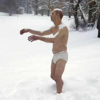 Debido al realismo de la obra, la comunidad del campus se sorprendía al ver a un hombre semidesnudo y dormido en medio de la nieve