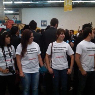 El grupo manifestante portó playeras blancas con leyendas como "Fue sin querer quiriendo" y "PlagioFIL2012" para así mostrar su inconformidad por la elección del jurado del galardón literario, que decidió premiar al autor peruano, Alfredo Bryce Echenique, quien ha sido acusado de plagio en distintas ocasiones.