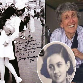 Friedman era una asistente dental de 21 años en uniforme de enfermera el 14 de agosto de 1945, el día en que los japoneses se rindieron. La gente se lanzó a las calles de los restaurantes, bares y salas de cine de la ciudad de Nueva York al enterarse de la noticia. Fue entonces cuando George Mendonsa vio a Friedman, le dio un giro y la besó. No se conocían.
