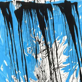 La forma del animal está definida por el espacio blanco que ocupa y que el artista ha dejado sin pintar mientras unos chorretones de pintura negra atraviesan de arriba abajo el cuadro como si fuera una irregular rejilla. EFE