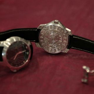 Anunciados como 'El reloj maya del fin del mundo', cada pieza lleva en su carátula números mayas, en lugar de romanos o arábigos que habitualmente se usan en estos artículos. 'Registré los números mayas para que ninguna marca de relojes los use de manera desinformada o insultante', dijo Jean Marc Bosque.
