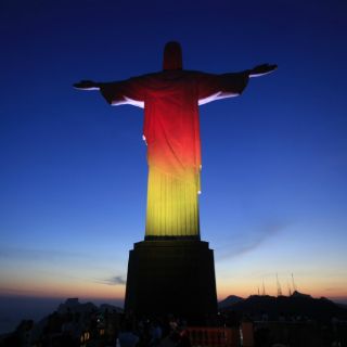 El Cristo, que corona la montaña del Corcovado, cambió su tradicional iluminación blanca por el negro, el rojo y el amarillo, colores que componen la enseña germana, a las 18.15 hora local (21.15 GMT).