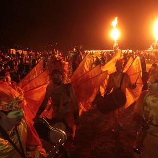 Luego, una caravana de artistas comenzó un recorrido por el lugar con unas camionetas que escupían fuego asemejando a las figuras míticas de los dragones. El evento proseguiría con él es espectáculo de Circo Dragón y una noche con música electrónica.