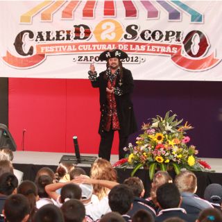 Mientras los estudiantes de la Escuela Urbana 233 entraban al Foro Circo del Museo Trompo Mágico para presenciar la ceremonia de inauguración de la segunda edición del Festival Cultural de las Letras Caleidoscopio 2012, montado en el escenario aderezado con racimos de globos multicolores, el pirata de los cuentos hilvanaba una historia en la que, cuando niño -lector voraz-, se encontró un cofre apelotonado de libros.
