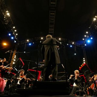 GUADALAJARA, JALISCO (16/SEP/2010).- El Grito de Independencia en el Centro de Guadalajara estuvo musicalizado por la Orquesta Filarmónica de Jalisco (OFJ), con un repertorio de piezas tradicionales mexicanas, que al final para evitar tropiezos en el guión de los festejos se modificó, e incluso se redujo.