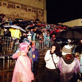 Si de moda habláramos, la tendencia en el concierto fue paraguas en mano e impermeables en tonos azules, rosas, amarillos y verdes. El lugar estuvo casi lleno a pesar de la lluvia, los asistentes se movían al ritmo de la música y de las luces en tonos amarillos, azules y verdes, que nacían del escenario y destellaban en lo alto del mismo.