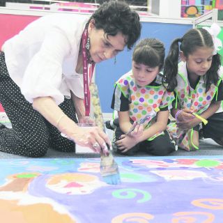 Sin ningún grito y con muchas sonrisas a cambio, Lourdes demostró la empatía que ha generado con los niños en sus siete años de experiencia en el trabajo infantil. Con ella, los niños de tres a seis años aprenden las bases del arte, la funcionalidad, mezcla de colores y maneras de plasmar la creatividad en los lienzos.