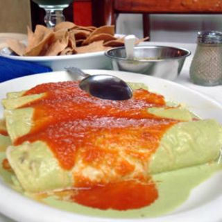 Poc-chuc: carne magra de cerdo, marinada, asada y servida con cebolla roja rostizada, frijoles y naranja agria. Queso relleno: queso de bola holandés, relleno con una mezcla de carne molida, tomate, pasitas y aceitunas, servido con salsas blanca y roja.