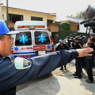 Aunque se tomaron todas las medidas para evitar las imágenes de los medios de comunicación, la ambulancia no pudo ingresar al domicilio del escritor, pues su altura rebasaba la del portón.