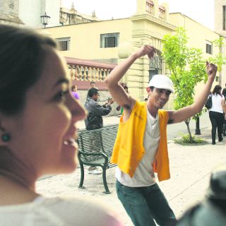 El eje de acción es invitar a las personas que transitan en diversos espacios públicos a dirigir una coreografía que el grupo de bailarines y músicos de este proyecto -Débora Galicia, Nayeli Santos y Diego de la Mora - interpretan en ese momento. Olga recibió las direcciones de don Isaac: su cuerpo se contrajo como si recibiera un golpe en el abdomen, saltó como si quisiera escapar de algo, alzó el brazo para descargar un azote. Pausa. Don Isaac hizo algunas acotaciones, dijo que le parecía bien. Esta pieza cerró con Olga en cuclillas, con los brazos alzados como si sostuviera un escudo, con la cabeza hacia el piso.