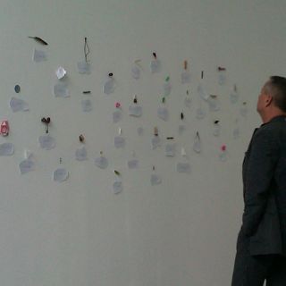 En total se presentan casi 70 piezas del creador educado en Montevideo, quien propone una crítica al mercado del arte.