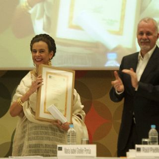 Con la presencia de Marco Antonio Cortés Guardado, rector de la Universidad de Guadalajara (UdeG); Raúl Padilla López, presidente de la FIL; Jaime Genaro Cuadriello, académico de la Universidad Nacional Autónoma de México (UNAM); Sergio López Ruedas, coordinador académico de la UdeG, y Nubia Macías, directora general de la FIL, María Isabel fue reconocida por sus aportaciones a la promoción de la lectura nacional.