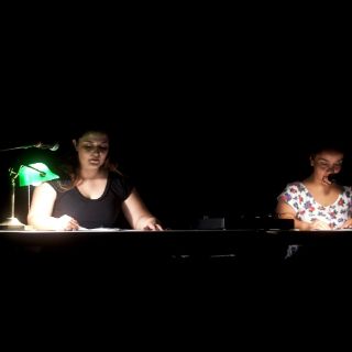 Por fin llegan un par de micrófonos a la mesa. Sofía y Mónica, entre lámparas, recomienzan la lectura y se entiende una mujer mayor, solitaria y que, luego de un viaje en autobús, donde un hombre la mira con detenimiento, recibe la visita de una extraña joven en su departamento.