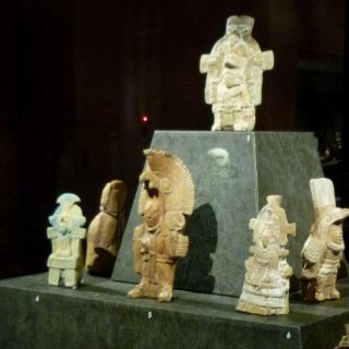 Entre las piezas más relevantes se encuentra un incensario antropomorfo de cerámica con pectoral, que representa al Dios del Sol; la escultura en piedra de un Chaac Mool, una estela o lápida con caracteres que aluden a Venus, y vasos y platos polícromos con escritura o diversas decoraciones pintadas.
