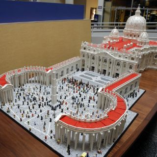 El padre Bob Simon pasó 10 meses construyendo una mini Basílica de San Pedro con medio millón de piezas de Lego. Su obra incluye un papa de Lego en un balcón frente a la muchedumbre en la Plaza de San Pedro, que a su vez está formada por unas 44 mil piezas que simulan adoquines.