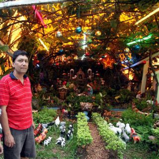 ASUNCIÓN, PARAGUAY (17/DIC/2011).- Aunque algún Santa Claus cuelgue de fachadas y balcones, los nacimientos siguen dominando la escena navideña de Gran Asunción, donde cada año una familia levanta su peculiar "pesebre móvil", en el que la Virgen María convive con una mujer que plancha la ropa.