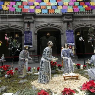 nacimiento de tamaño real hecho en talavera, y que se exhibe en el palacio municipal local, ha llamado la atención y admiración de los visitantes a esta ciudad durante las vacaciones decembrinas.