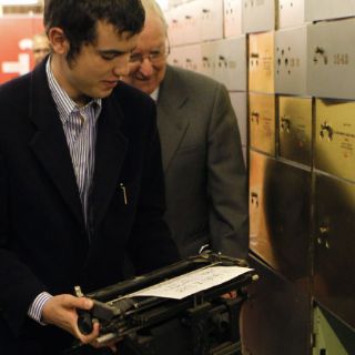 La máquina es una pieza antigua que este lunes pudo verse en la entrega del Premio Cervantes y que permanecerá guardada durante 52 años en la cámara acorazada del Instituto Cervantes.