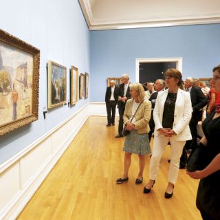 La ministra de Cultura, Hadia Tajikk, fue la encargada de dar por abierta la exposición en un acto celebrado en el Aula de la Universidad de Oslo, al que asistieron el príncipe heredero Haakon y representantes de la Noruega oficial.