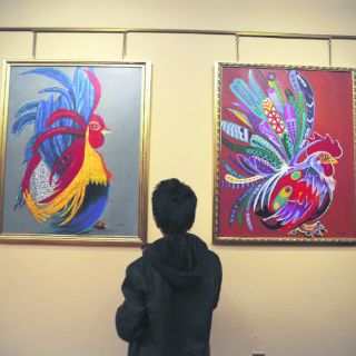 Liliana Navarro, otra artista con presencia en la exposición, dijo haber comenzado en la pintura hace cinco meses. En el arte ha encontrado la libertad para expresarse: “Es una terapia padrísima, de mucha paz, serenidad, tranquilidad. Es un sentimiento de mucha libertad”. Esta es su primera exposición, con lienzos que muestran figuras zoomorfas, como los gallos.