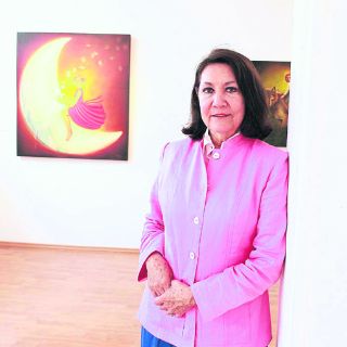 Luna roja, una de las piezas de mayor formato, en 1.10 x 1.20 metros, permite, explica Valdés, “generar un sentido de la exposición a partir de la interpretación de cada uno de los espectadores de la pieza”. En ella se aprecian tres figuras femeninas, más maduras, montadas sobre una luna menguante. En El satélite yace de nueva cuenta el corazón, ahora pálido, pero que sus venas van tomando color conforme se acercan a las mujeres.