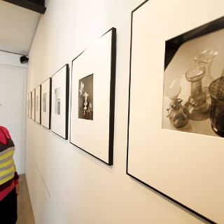 La muestra, comisariada por la propietaria de la galería, Angustias Freijo, se podría dividir en dos secciones: por un lado los paisajes exteriores, tanto rurales como urbanos de la época, y por otra parte las fotografías tomadas muy de cerca de escenas cotidianas de objetos de su casa y estudio.