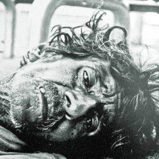 Una de las tres fotografías de Édgar -quizá la más impactante- retrata a quien alguna vez fuera arquitecto de profesión, tirado sobre el asfalto con la mirada perdida. A simple vista, pareciera ser que el hombre está muerto, pero no es así.