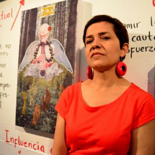La artista plástica ofreció una charla en la que explicó los motivos que la llevaron a urdir "Proyecto Tarot: El Espejo de la Vida", intervención que permanecerá en la vitrina del Ex Convento del Carmen hasta el 30 de abril.