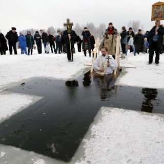 En Moscú, las autoridades montaron 60 sitios oficiales para que los creyentes pudieran tomar sus baños la noche del lunes, desde piscinas al aire libre hasta simples hoyos en lagunas de superficies congeladas. Durante la noche, las temperaturas en Moscú eran de menos 10 grados centígrados.