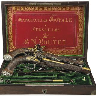 Las dos pistolas históricas las fabricó el que fuera el armero oficial del militar y gobernante francés Napoleón Bonaparte, Nicolas Noël Boutet (Versalles).
