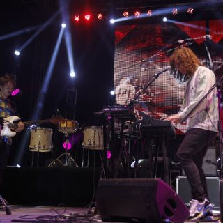 Astro continuó el concierto con piezas como "Panda", "Mira, está nevando en las pirámides, "Le golden ballon", "Volteretas", "Pepa", "Manglares", "Drogas mágicas" y "Raifilter".