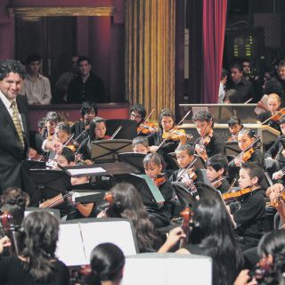 Llegó después la Orquesta Infantil. Las cabezas de los pequeños intérpretes apenas sobresalían por encima de los atriles de sus partituras, pero los arcos de violín se movían coordinadamente para seguir las piezas de su repertorio: "La Llorona" y "Cielito Lindo" del dominio popular; "La Vikina", de Rubén Fuentes; y "Finlandia", de Jean Sibelius.