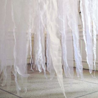 Tela de organza, un polímero de producción industrial (malla plástica), acrílicos, madera, técnicas mixtas y el agua son elementos que la artista emplea para armar un recorrido que invita a la reflexión y al cuestionamiento en torno al líquido.