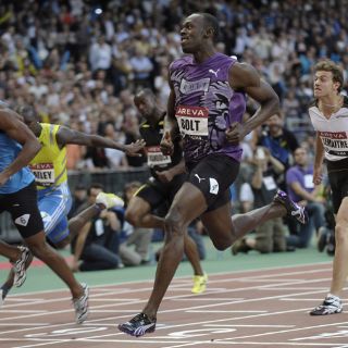 SAINT-DENIS, FRANCIA (17/JUL/2010).- El atleta jamaiquino Usain Bolt, campeón olímpico y mundial de las competencias de velocidad, ganó el viernes su esperado duelo con su compatriota Asafa Powell en los 100 metros, cronometrando 9.84 segundos en la justa de París, correspondiente a la novena fecha de la Liga Diamante de atletismo.