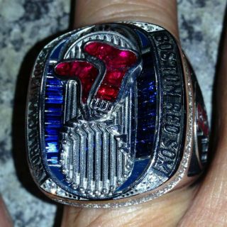 Era un anillo verdadero, con diamantes, zafiros y rubíes, incrustados en un aro de oro blanco de 14 kilates, con el emblema de los Medias Rojas y una imagen de los jugadores con barba.