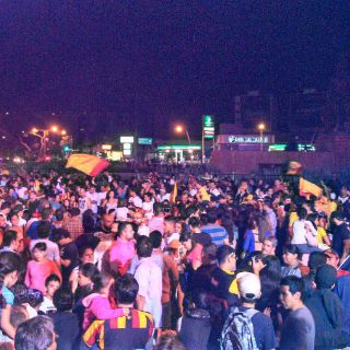 GUADALAJARA, JALISCO (11/MAY/2014).- Tras una final definida en penales contra los Tecos de la Universidad Autónoma de Guadalajara, miles de aficionados a los Leones Negros de la Universidad de Guadalajara llegaron a la Glorieta de la Minerva, para festejar que su equipo pasó a primera división.