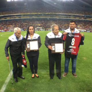 Un aficionado de nombre Octavio Torres y el jugador del primer equipo Martín Barragán, quien no entró en planes de Gustavo Matosas para este partido, entregaron el reconocimiento a estas leyendas vivientes del equipo poderoso que logró el título en la temporada 1950-1951, en aquel lejano 22 de abril.