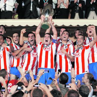MÓNACO, MÓNACO (28/AGO/2010).- Contra todos los pronósticos, el Atlético de Madrid, vencedor de la UEFA League, conquistó la Supercopa de Europa al derrotar 2-0 al Inter de Milán, rey todopoderoso de la Liga de Campeones, ayer en Mónaco, donde le cortó su racha de títulos y le quitó el rótulo de “máquina de ganar”.